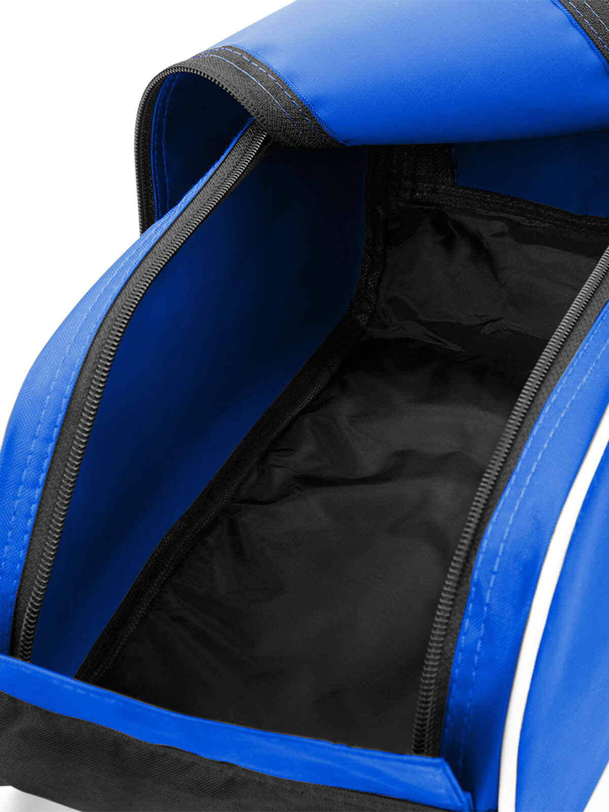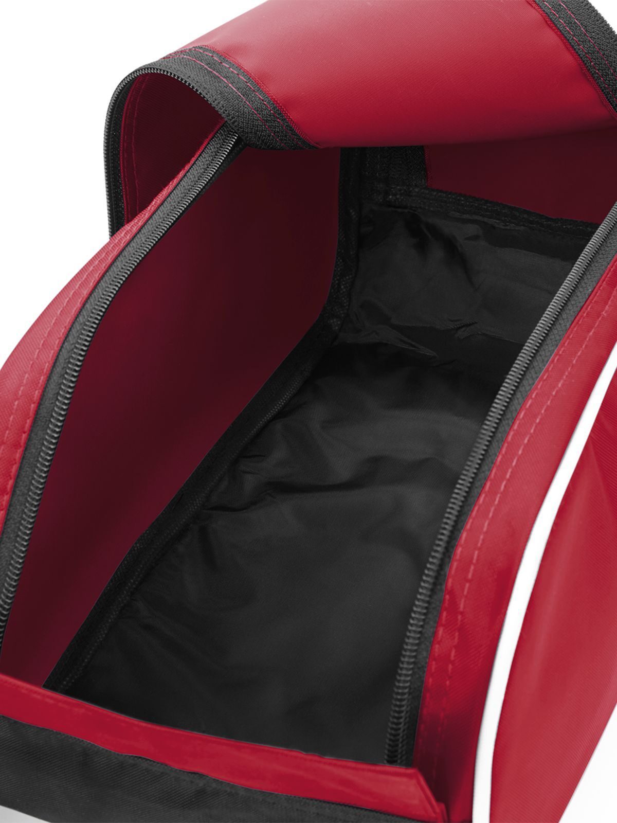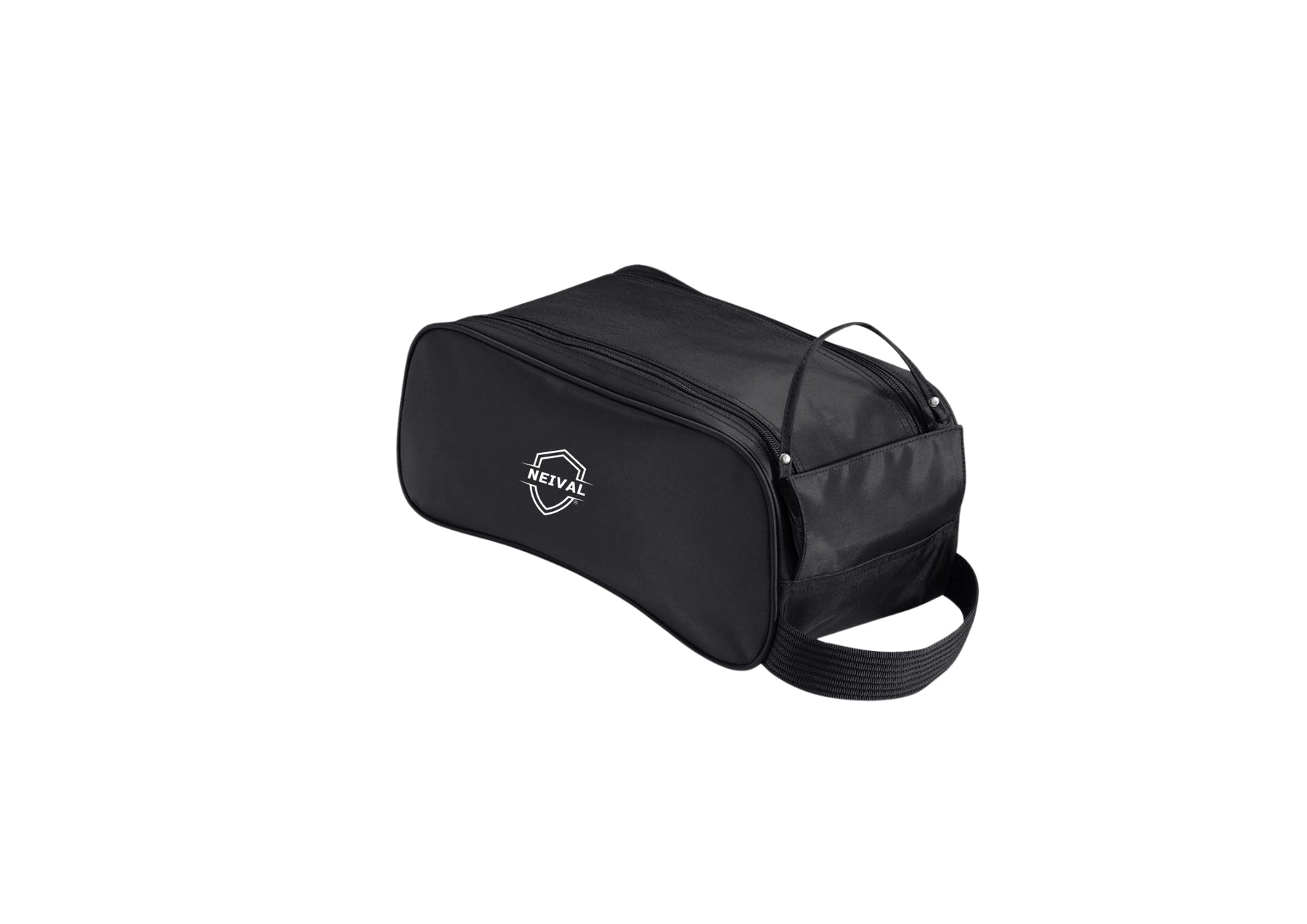 100% nylon 420D. Contenedor para zapatos. Dimensiones 35x18x16 cm. capacidad 9 litros. Área imprimible: 35x8,5 cm maximo. Área imprimible flanco: 30x10 cm maximo.
