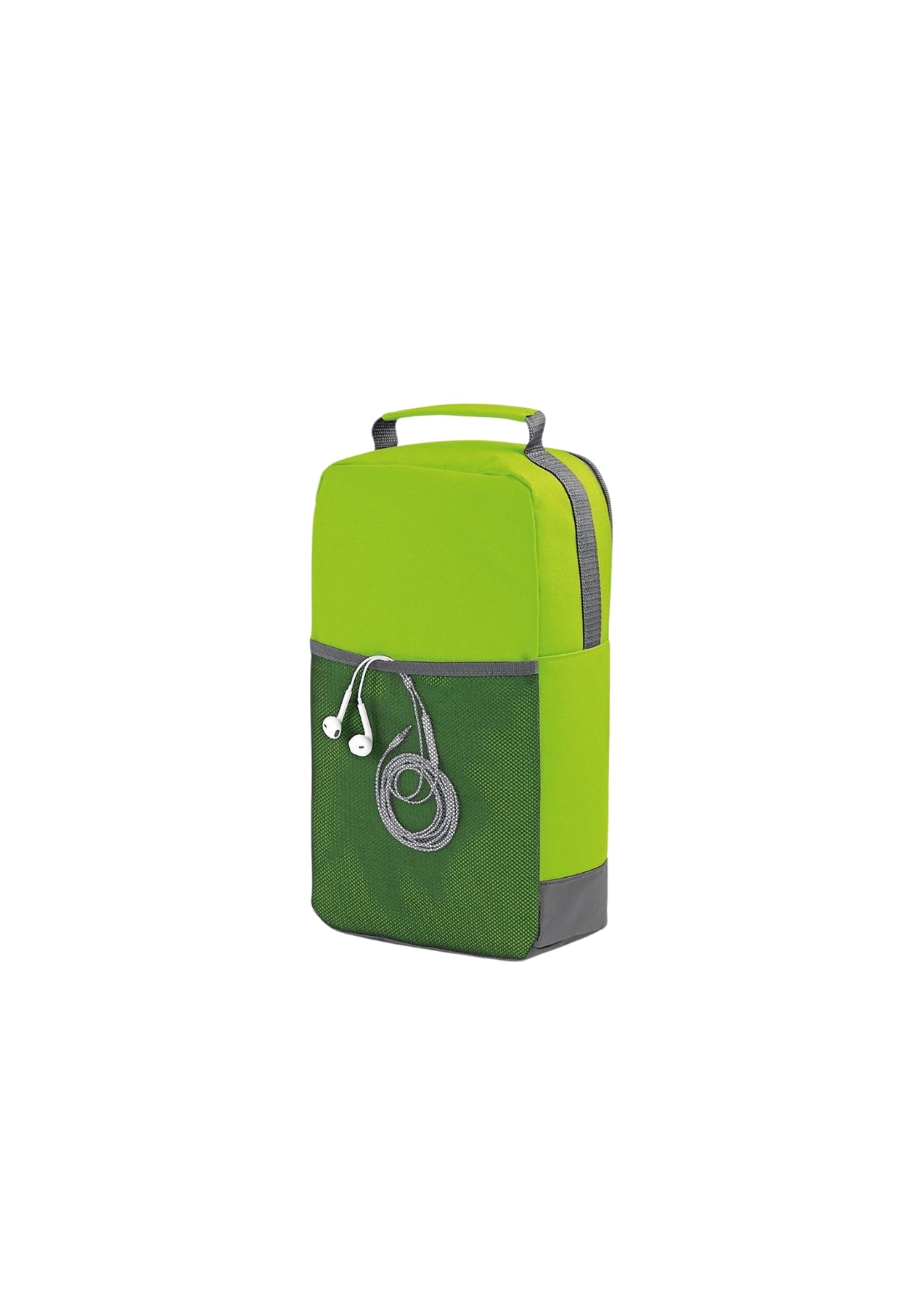 100% Combinación 600D/420D poliéster. Contenedor para zapatos con ojal en metal para la ventilación, bolsillo de malla en la parte posterior. Dimensiones: 35x19x12cm. Capacidad: 8 litros. Area imprimible: 23 x 15 cm.