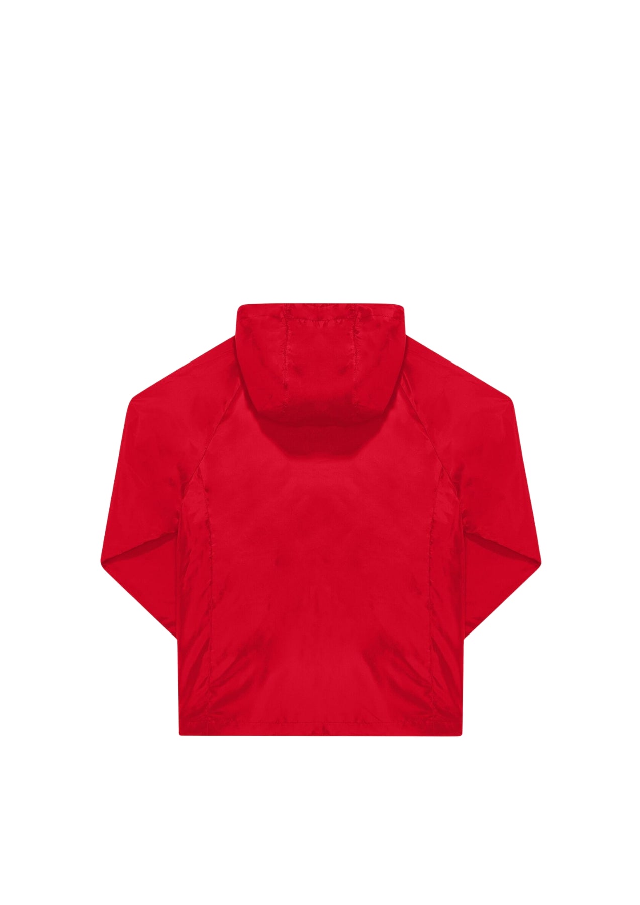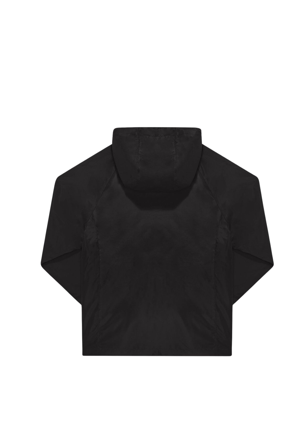 100% poliéster reciclado. Chaqueta cortaviento que se pliega en un bolsillo, repelente al agua, mangas raglán, capucha ajustable con cordón, puños semielásticos, género neutro.