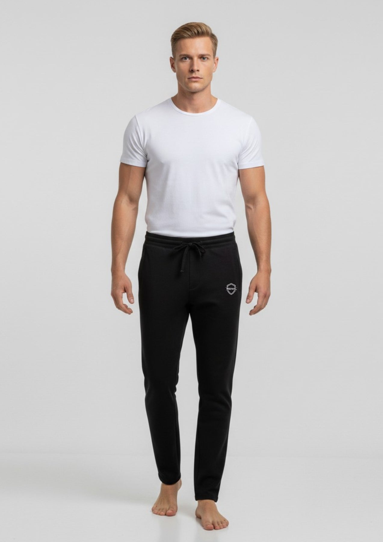 Pantalón de felpa unisex con puños en el bajo, ideal para el día a día o el entrenamiento. Su cintura elástica con cordón ajustable y bolsillos laterales garantizan comodidad y libertad de movimiento. Fabricado con materiales suaves y resistentes para acompañarte en cualquier momento.