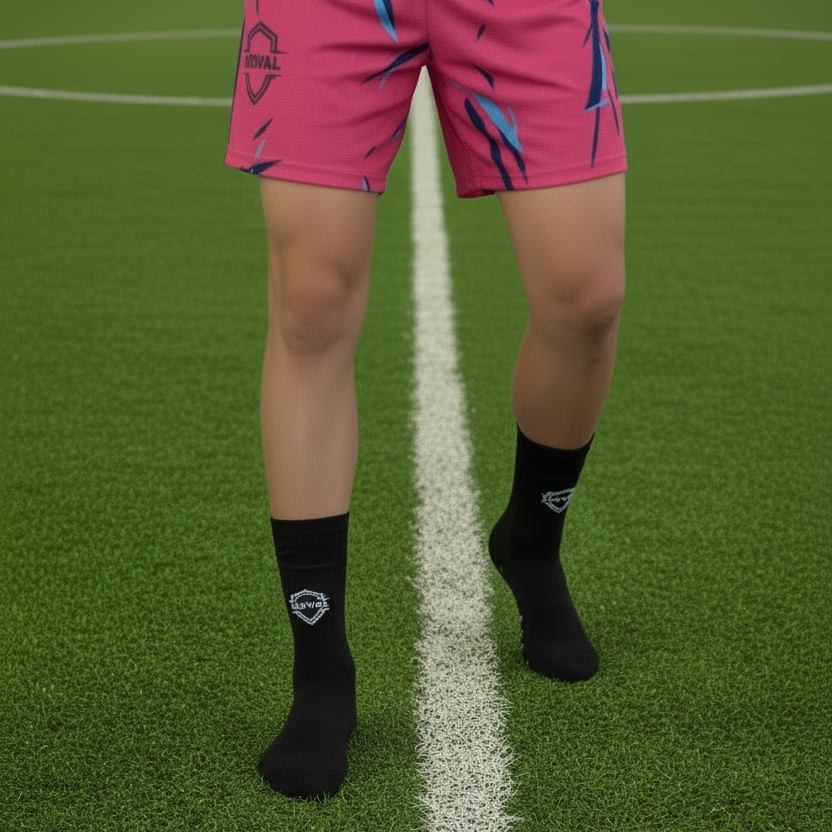 Fabricados en España con tejido técnico COOLMAX® + VAPORFEEL©, diseñados para mantener el pie seco, estable y cómodo durante todo el partido.