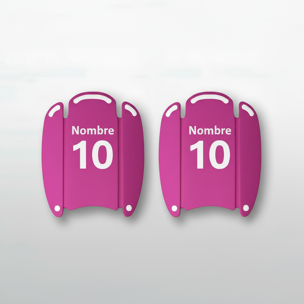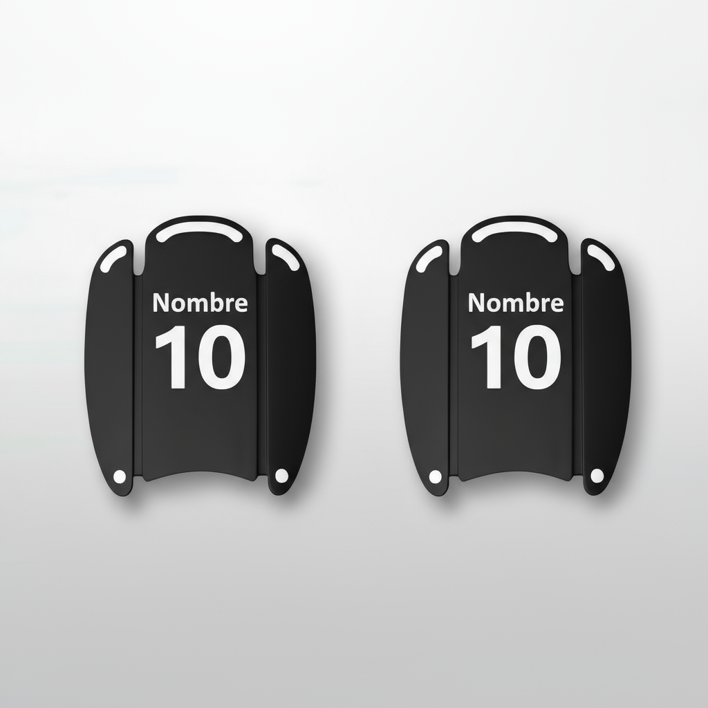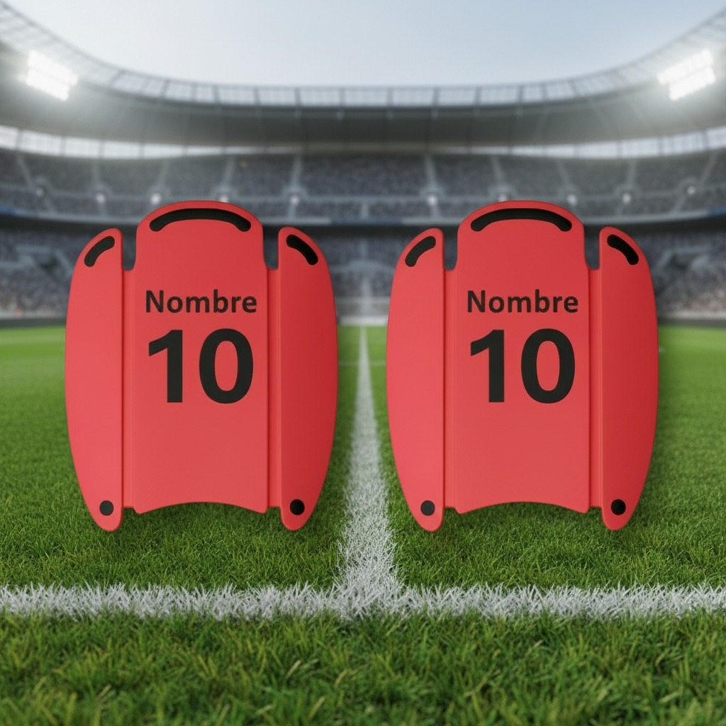 Sí. Puedes elegir dorsal, nombre o ambos, y aplicarlos igual en las dos espinilleras o distintos en cada pierna.