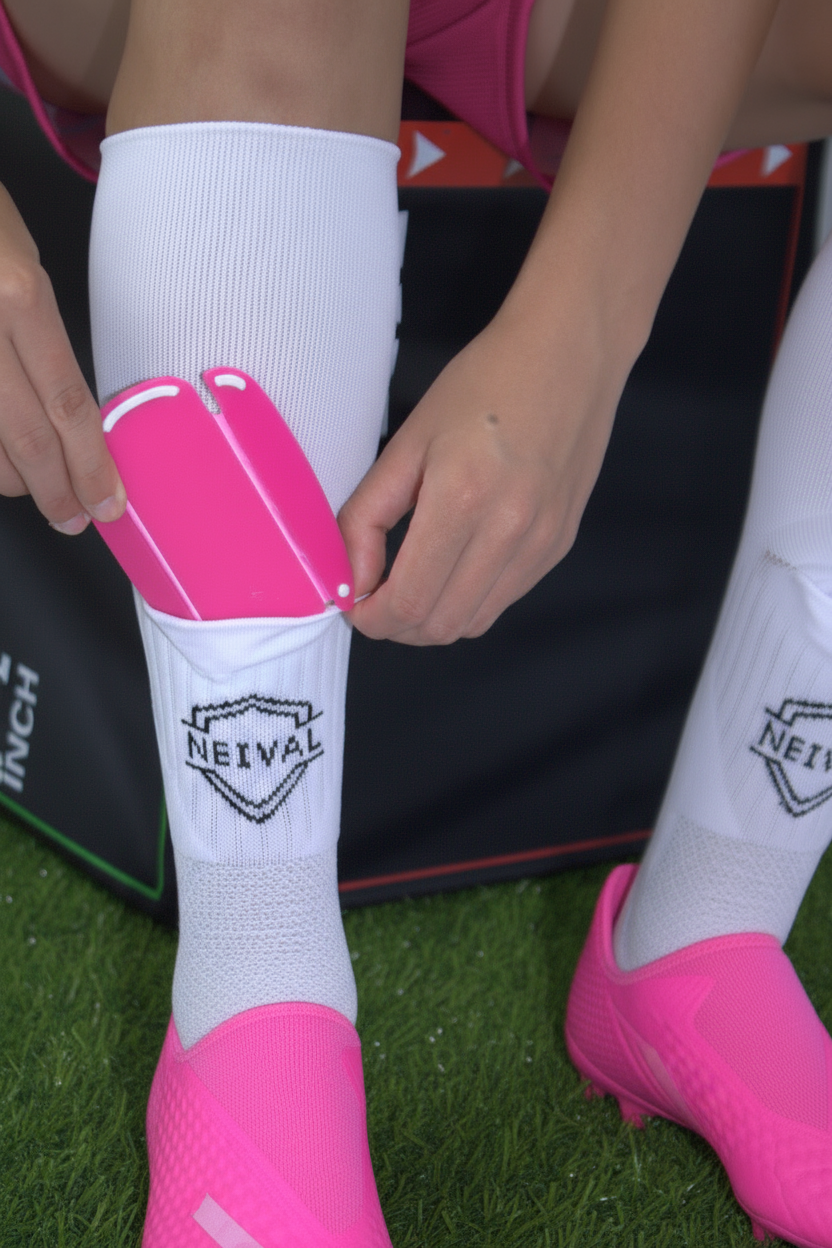 Consigue el ajuste profesional combinando tus espinilleras Neival con los calcetines Pocket Non-Slip Pro y tus calcetas de juego.
